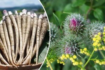 Лопух (Arctium lappa) із своїми великими листям і колючими плодами, що чіпляються за одяг, часто вважають