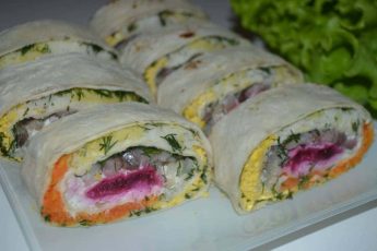 Ділимо тісто на 4 частини, розкачуємо кожну частину в тонкий коржик, ділимо на 8 трикутників. У товсту частину кожного трикутника кладемо начинку і загортаємо товстим кінцем усередину.