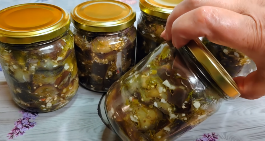 В каструлю влити олію та додати всі овочі, довести до кипіння, кип‘ятити 10 хв, влити оцет, закипить, скласти в пропарені банки, укутати на сутки.