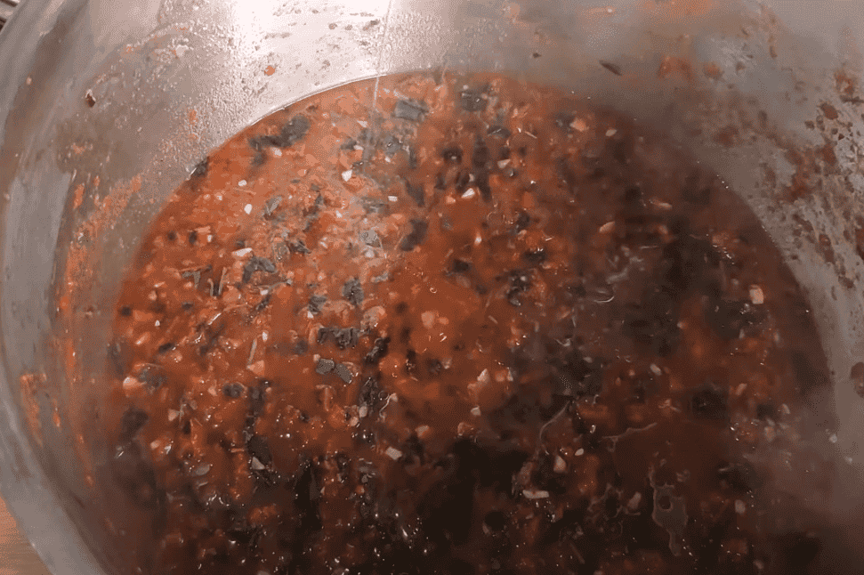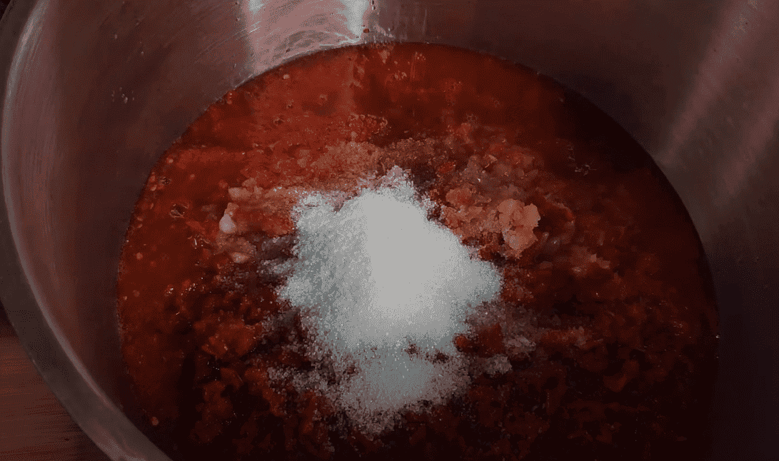 Перемішуємо до розчинення солі та цукру і доводимо до кипіння. Варимо соус “Суго” 30 хвилин.