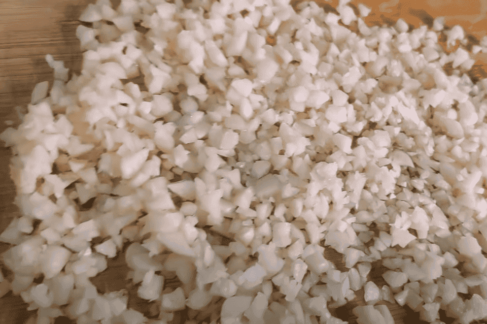 3. Часник 100 гр, щоб було простіше почистити, замочіть заздалегідь у воді. Нарізаємо часник дрібними шматочками.