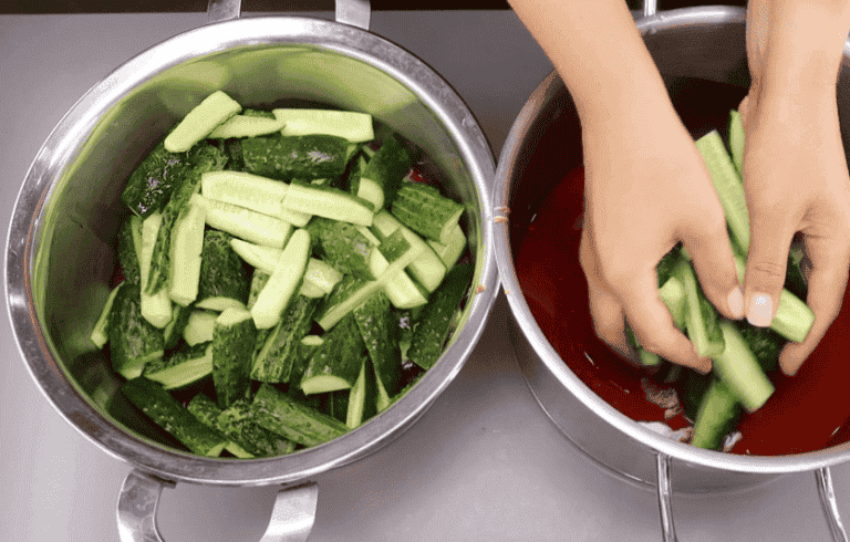 Огірки зараз пустять сік, рідини побільшає і вони будуть повністю занурені в маринад.