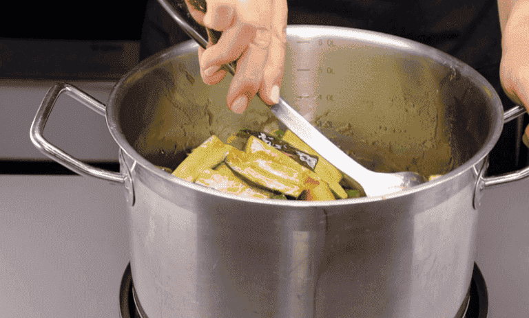 Пройшло 10 хвилин, бачите скільки вже рідини. Ще раз перемішую та залишаю під закритою кришкою проварюватись далі.