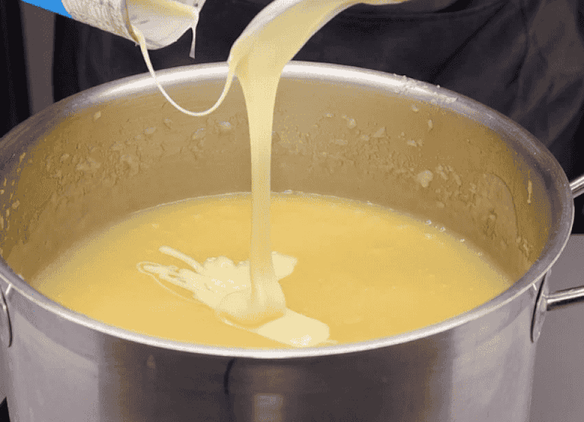 Тепер виливаємо сюди банку згущеного молока. Беремо тільки якісне, смачне та густе. І знову ж таки за допомогою блендера доводимо пюре до однорідного стану. Даємо пюре закипіти, зменшуємо вогонь і проварюємо 10 хвилин.