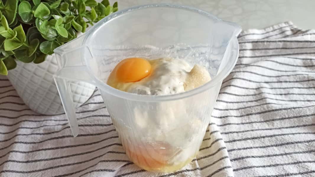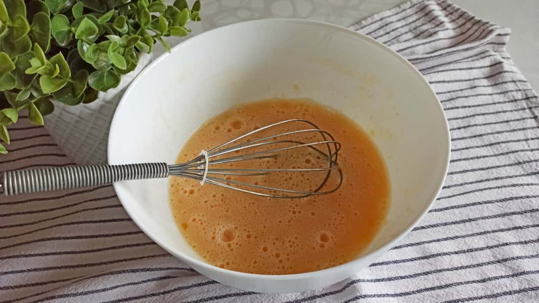 1. За допомогою вінчика збиваємо яйця з цукром.
