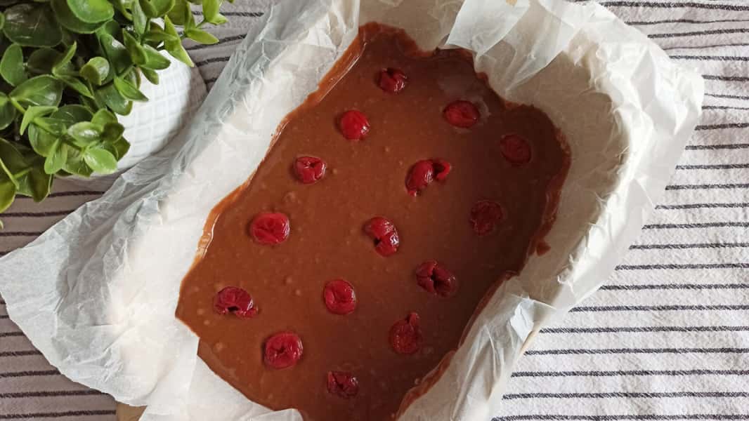 7. Брауні з сиром і вишнею слід нарізати на порційні шматочки тільки після повного охолодження.