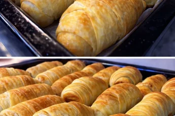 - Акуратно скрутіть у рогалики та викладіть на деко, застелене пергаментом.