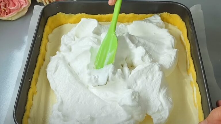 На шар сирної начинки кладемо безе з білків.