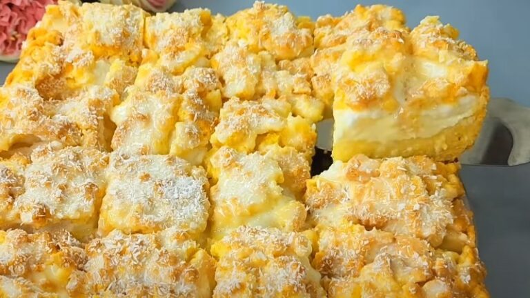 Випікаємо пиріг при 160 градусах 40 хвилин. Поливаємо верхівку згущеним молоком, за бажанням прикрашаємо кокосовою стружкою.