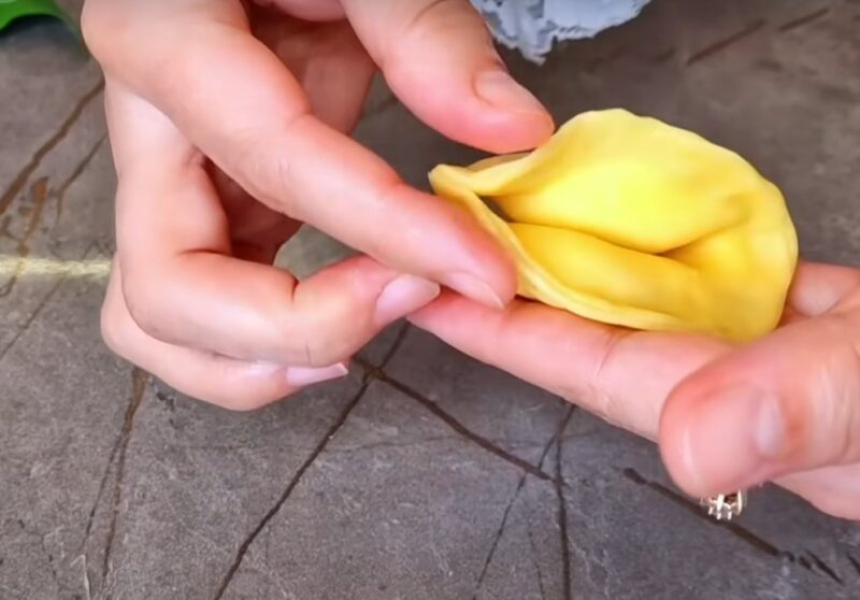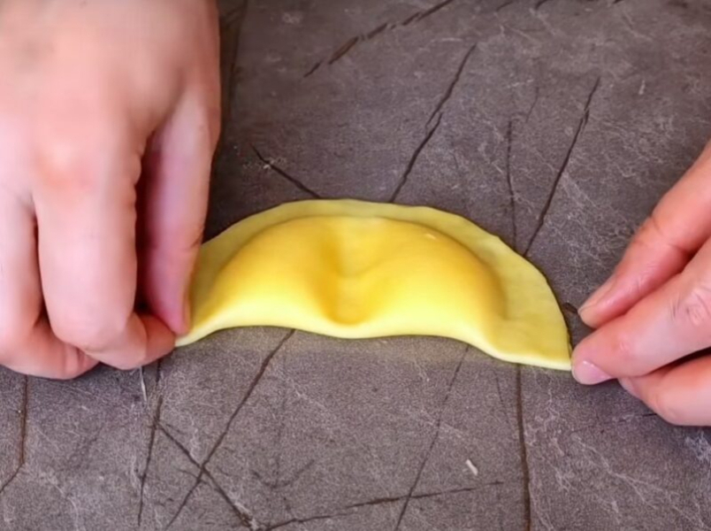 З’єднайте краї коржика так, щоб начинка була повністю «запечатана». Формуйте характерний вигляд “мушлі”.