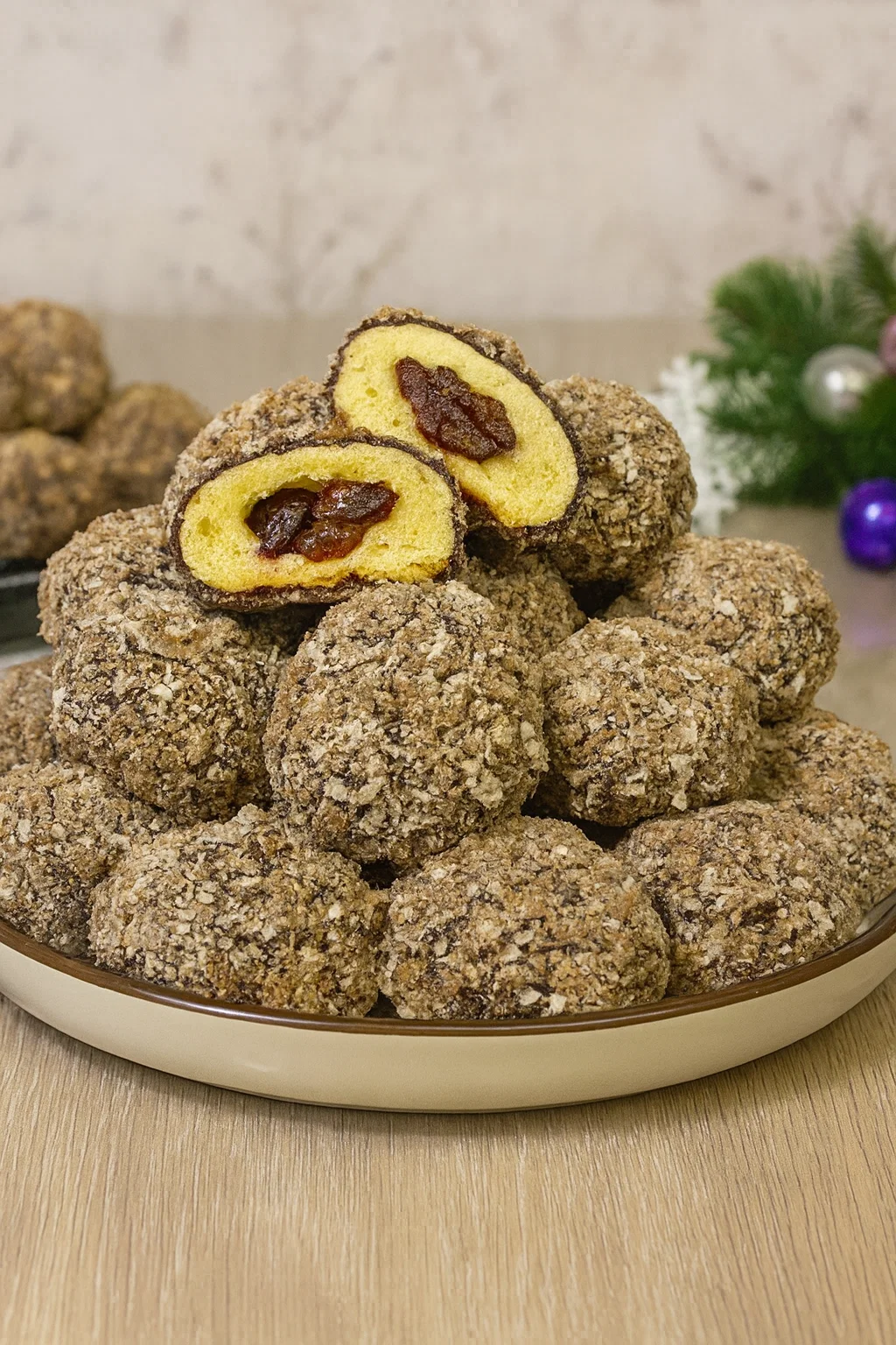 - У кожну кульку тіста покладіть трохи начинки та ретельно защіпніть.
