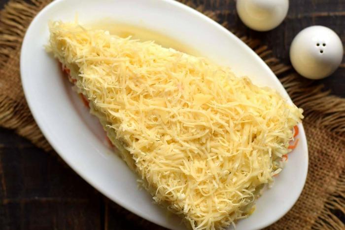 6. Натріть сир та посипте ним яблучний шар. Майонез зверху не обов’язковий.