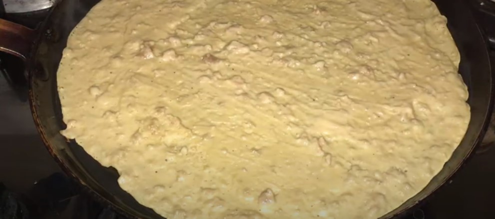 Яйця збити з сіллю, перцем, борошном і молоком до однорідної консистенції, потім додати подрібнену печінку і ще раз збити блендером.