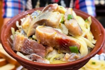 У великій мисці змішай смалець, сметану, яйце, цукор, ванільний цукор і дрібку солі — маса має стати ніжною та кремовою.
