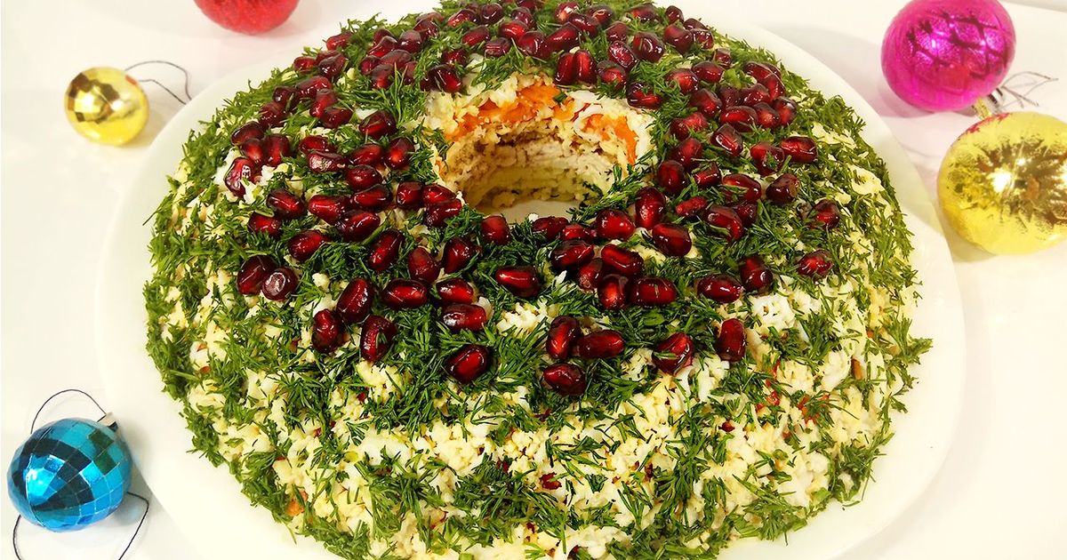 Святковий і елегантний, цей салат завдяки формі вінка виглядає вишукано навіть без зайвого декору.