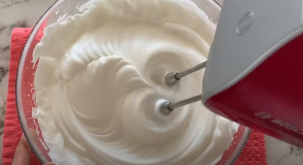Поступово всипте 60 г цукру та збивайте на високій швидкості до стійких піків.