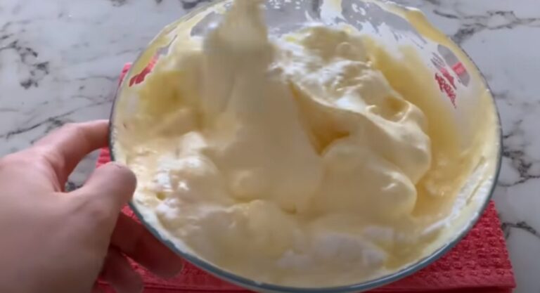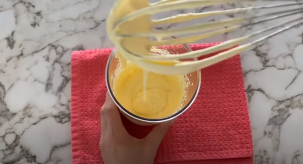 Жовтки збийте з рештою цукру протягом 2–3 хвилин, доки маса не посвітлішає.