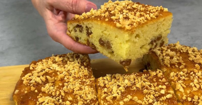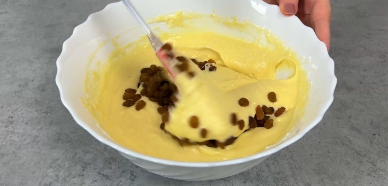 За бажанням можна додати сухофрукти. Я додаю 100 г родзинок — з ними пиріг виходить ще смачнішим.