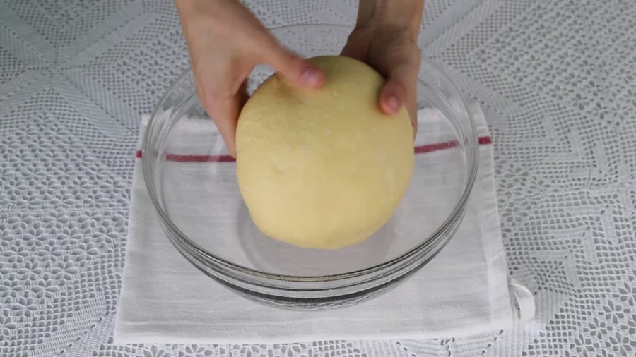 Готове тісто ділю на 23 частини (приблизно по 50 г). Кожен шматочок округлюю, накриваю та залишаю «відпочити» на 10 хвилин.