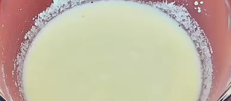У велику миску висипаємо цукор і манну крупу, заливаємо холодною водою та добре перемішуємо до однорідної маси. Залишаємо суміш на 20–30 хвилин, щоб манка добре набухла.