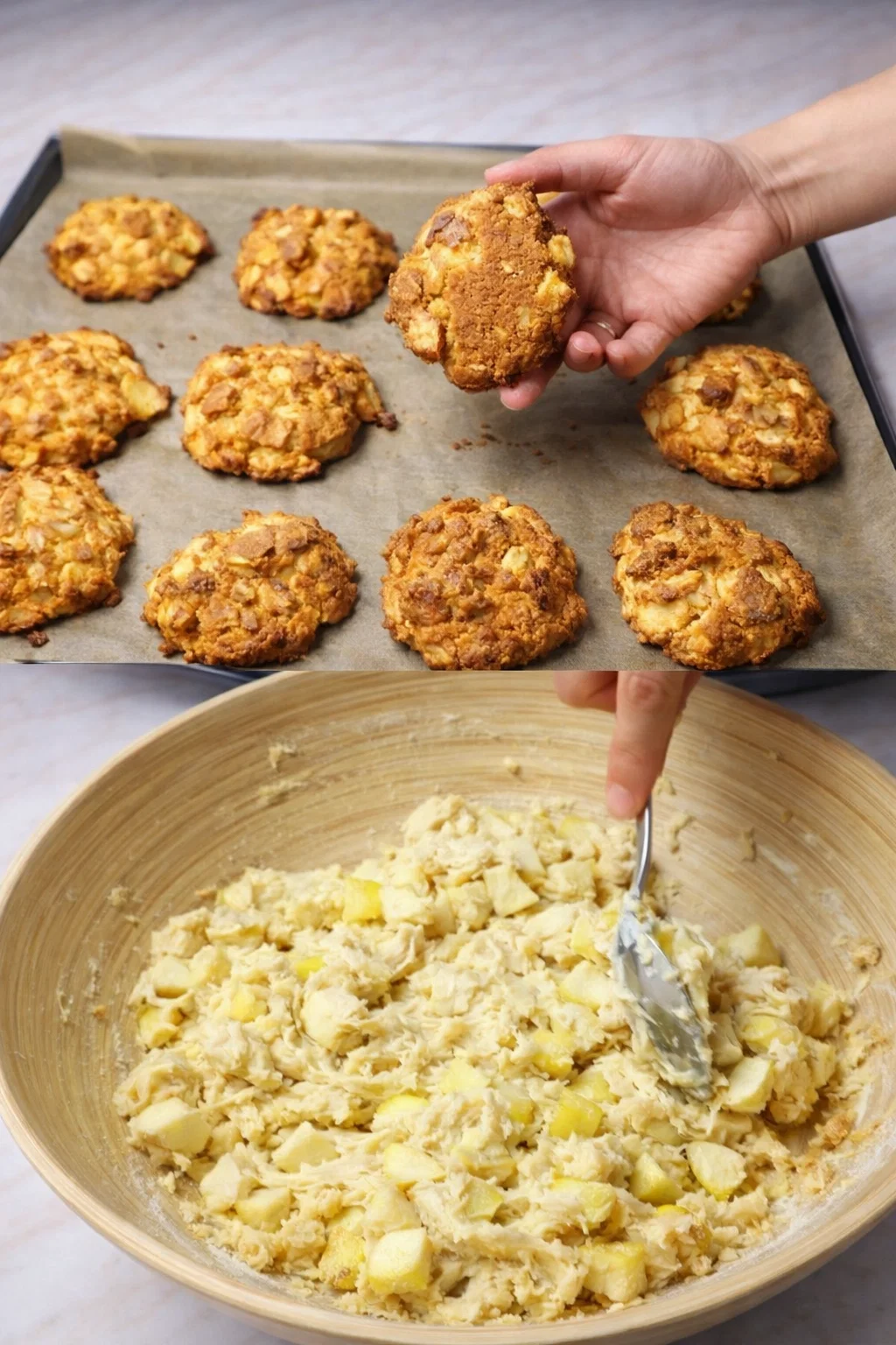 Це м’яке яблучне печиво виходить неймовірно смачним, легким і простим у приготуванні. Ідеально підходить для сніданку або перекусу. Особливо смачно з свіжими яблуками в сезон – пальчики оближеш!