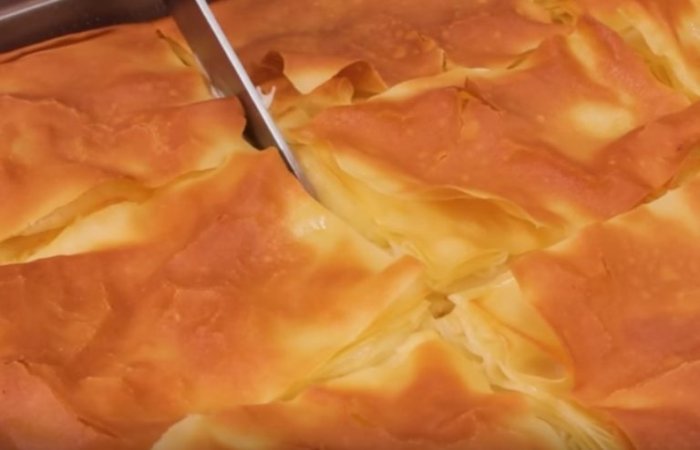 Пиріг виходить ароматний, із тягучою ніжною начинкою та м’якими шарами тіста. Спробуйте — вам обов’язково сподобається!